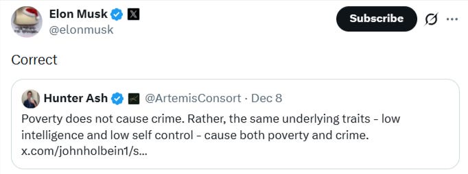 Recently, an account on X/Twitter posted a claim that the basic income pilot in Finland proved that basic income doesn’t reduce crime. They cited a new study analyzing the data which found a “null result” on crime impacts. Elon Musk—the guy most likely to become the world’s first trillionaire who allegedly supports UBI but says he doesn’t until people buy enough of his robots and robotaxis to cause mass unemployment—boosted this signal to his massive following, replying “Correct” to the sentiment that if you think basic income fixes crime by reducing poverty, you’re deluded, and that the real problem is low intelligence and low self-control.